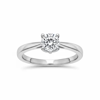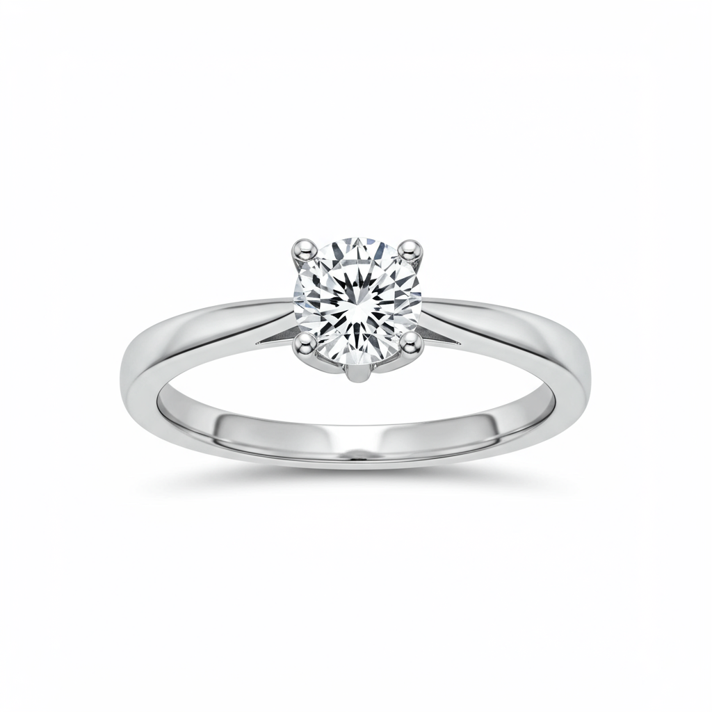 Seal a lifelong commitment with this elegant solitaire promise ring, crafted meticulously in luminous 18KT white gold. The design centers around a brilliant round diamond, chosen for its exceptional VVS clarity and stunning G-H color grading. Its sophisticated setting ensures maximum light performance, symbolizing the purity and enduring strength of your bond. This piece is a timeless token of devotion, designed for everyday wear.