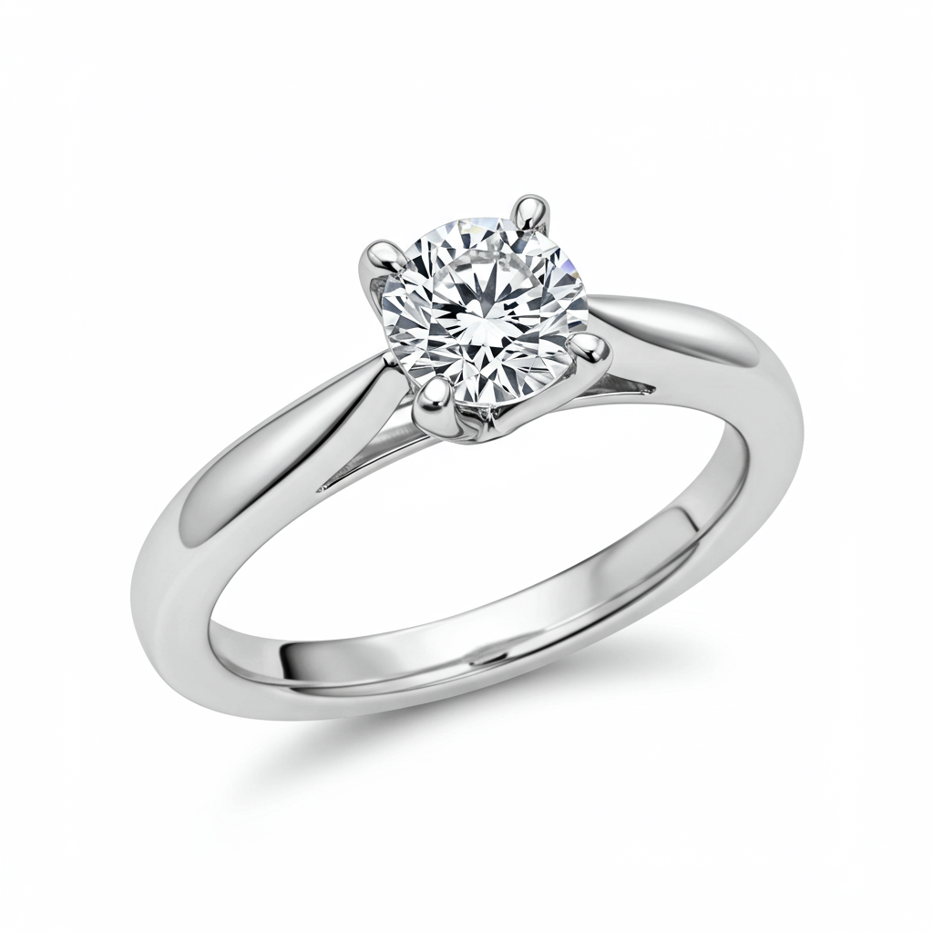 The Solitaire Radiance engagement ring captures timeless elegance in a sleek, modern setting. Crafted in polished 18KT white gold, this piece elevates the central diamond with minimal distraction. The precision setting ensures maximum light entry, enhancing the stone's brilliance and fire. It is the perfect symbol for a lifelong commitment, combining exceptional craftsmanship with classic design purity.