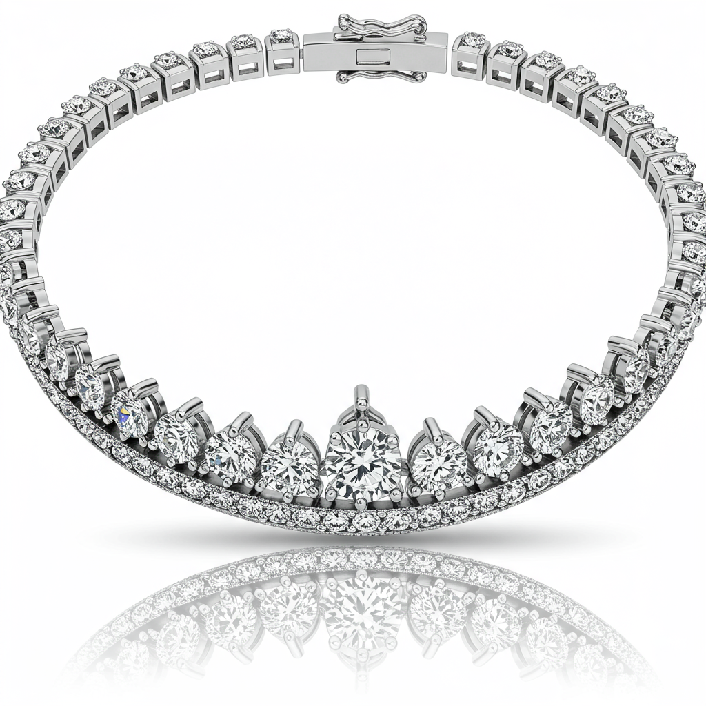 This exquisite Crown Setting Tennis Necklace embodies timeless elegance and modern craftsmanship. Set in luxurious 18KT white gold, a continuous line of perfectly matched round brilliant diamonds catches the light from every angle. The unique crown setting elevates each VVS diamond, maximizing brilliance and ensuring secure wear. This high-jewelry piece is the ultimate statement of luxury, designed to be cherished for generations.
