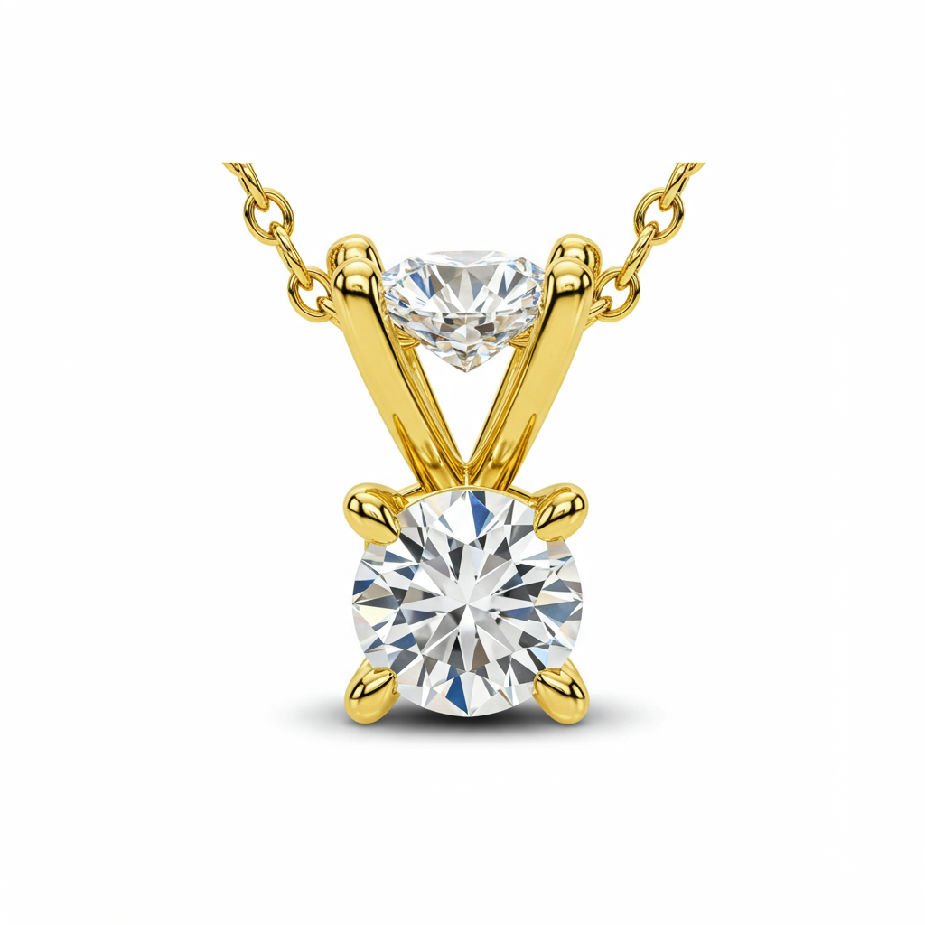 This exquisite Gold Necklace features a brilliant 0.75 carat round cut diamond suspended elegantly from an 18KT yellow gold chain. The classic solitaire design emphasizes the extraordinary brilliance and fire of the VVS-G graded stone, set perfectly to maximize light return. Crafted for timeless appeal, this high-luxury piece transitions effortlessly from everyday wear to formal evening attire. It serves as a defining statement of sophisticated simplicity and exceptional craftsmanship, making it the perfect heirloom piece.
