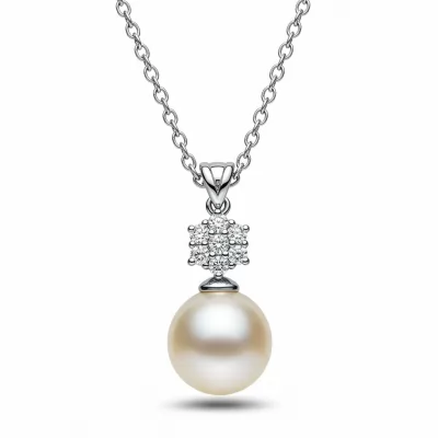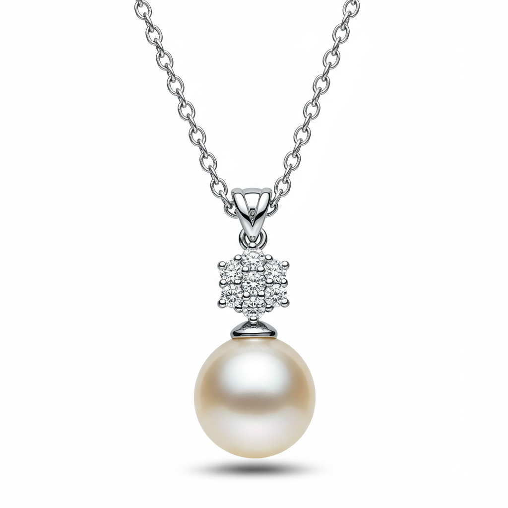 The Pearl A Necklace epitomizes classic elegance, featuring a luminous, perfectly spherical Akoya pearl suspended beneath a brilliant cluster of micro-set diamonds. Crafted in pristine 18KT white gold, this pendant offers timeless grace and sophisticated charm. The delicate chain complements the central design, ensuring the pearl remains the focal point. This piece is an essential addition to any curated fine jewelry collection, ideal for both daily wear and formal occasions.