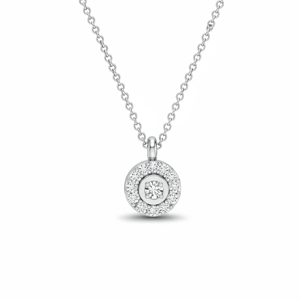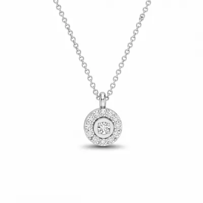 The Charm Necklace embodies effortless sophistication, featuring a delicately suspended pendant adorned with brilliant round diamonds. Crafted in lustrous 18KT white gold, the charm catches the light with every movement. This versatile piece serves as a perfect everyday signature accessory or a thoughtful luxury gift. Its minimalist design ensures timeless appeal, making it a treasured addition to any fine jewelry collection.
