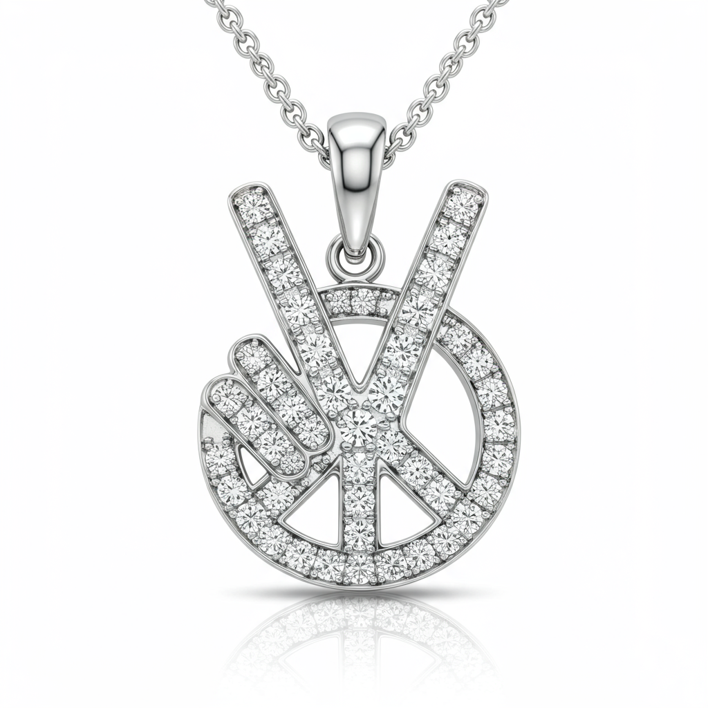 The Peace Sign Necklace is a profound statement piece, delicately crafted in polished 18KT white gold. This iconic symbol of unity is illuminated by a meticulous pave setting of brilliant-cut VVS diamonds. Suspended from a fine cable chain, the pendant captures light beautifully, offering a subtle yet impactful sparkle. It serves as a timeless emblem of hope and elegance, perfect for daily wear or sophisticated layering. This necklace is designed for enduring luxury and meaningful personal expression.