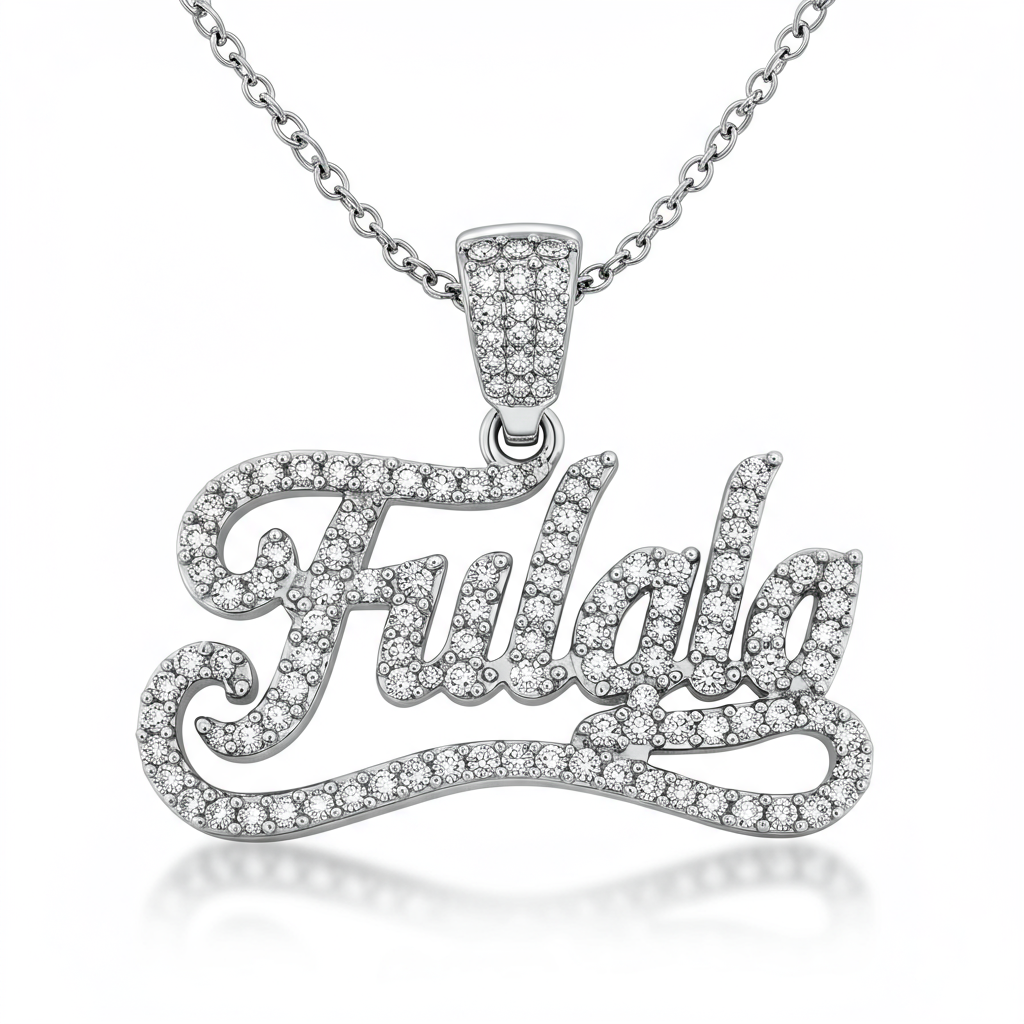 The Name Necklace is a bespoke expression of personal identity, meticulously crafted in radiant 18KT white gold. Each custom letter is carefully formed into a flowing script, set entirely with brilliant, high-clarity diamonds for an unparalleled sparkle. This piece seamlessly merges modern personalization with timeless luxury, making it the ultimate signature accessory. It hangs gracefully from a delicate yet strong cable chain, perfect for daily wear or layering.