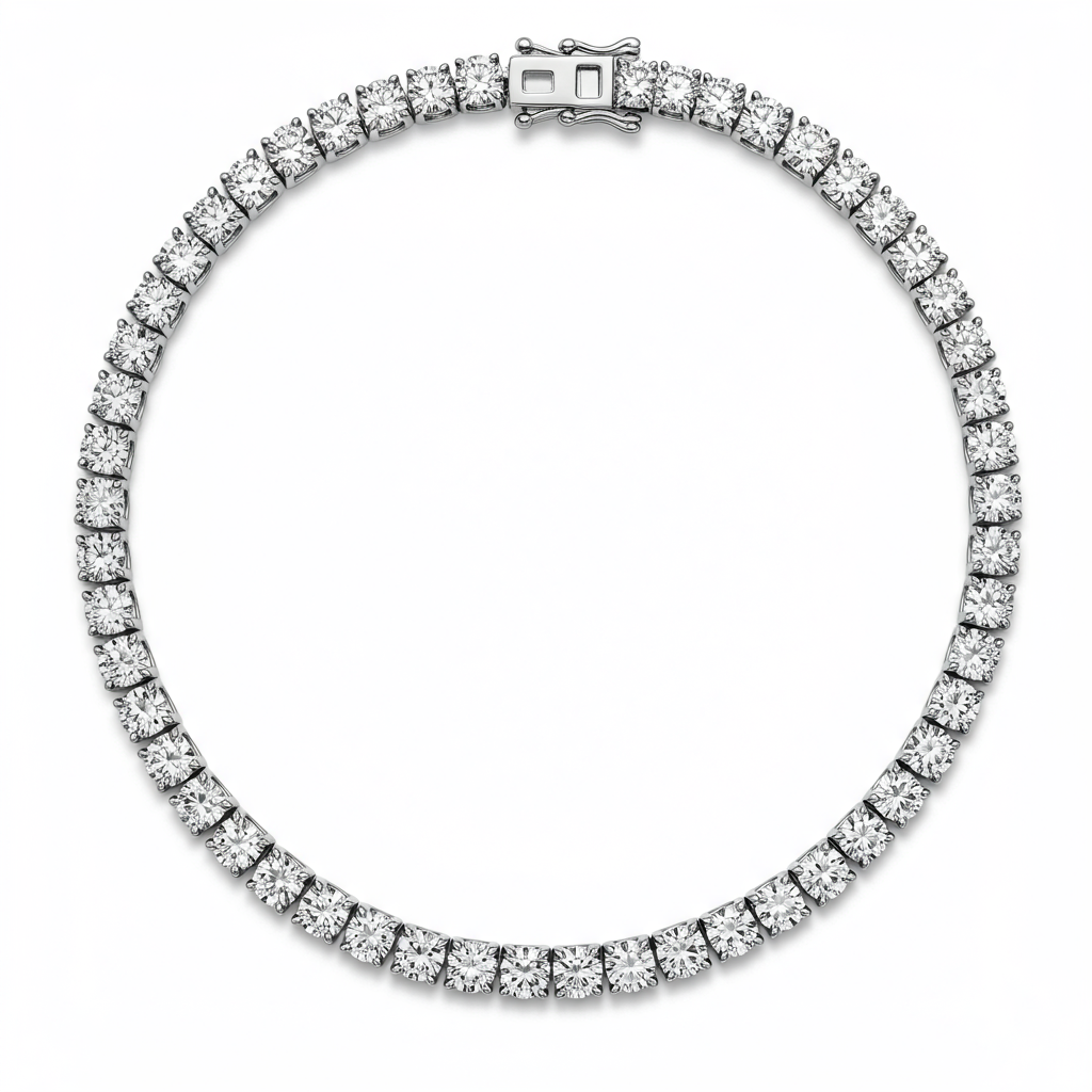 The Tennis Necklace embodies timeless elegance, featuring a continuous stream of perfectly matched brilliant-cut diamonds. Crafted in lustrous 18KT white gold, this piece offers exceptional flexibility and comfort, draping beautifully around the collarbone. Each VVS diamond is meticulously secured in a minimalist four-prong setting, maximizing light return and ensuring breathtaking sparkle from every angle. It serves as the ultimate statement of sophistication, perfect for both gala events and elevated daily wear.