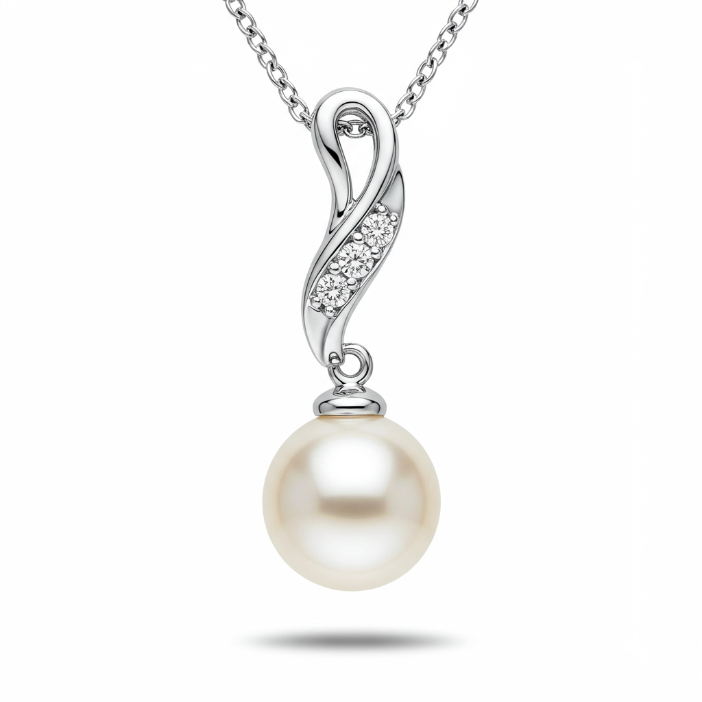 This exquisite pendant features a luminous cultured pearl suspended beneath a brilliant cluster of VVS diamonds. Crafted in luxurious 18KT white gold, the design harmoniously blends classic elegance with modern minimalism. The delicate diamond accent adds a subtle sparkle, highlighting the pearl's pristine luster. This necklace is the perfect statement piece for sophisticated evening wear or elevated daily attire.