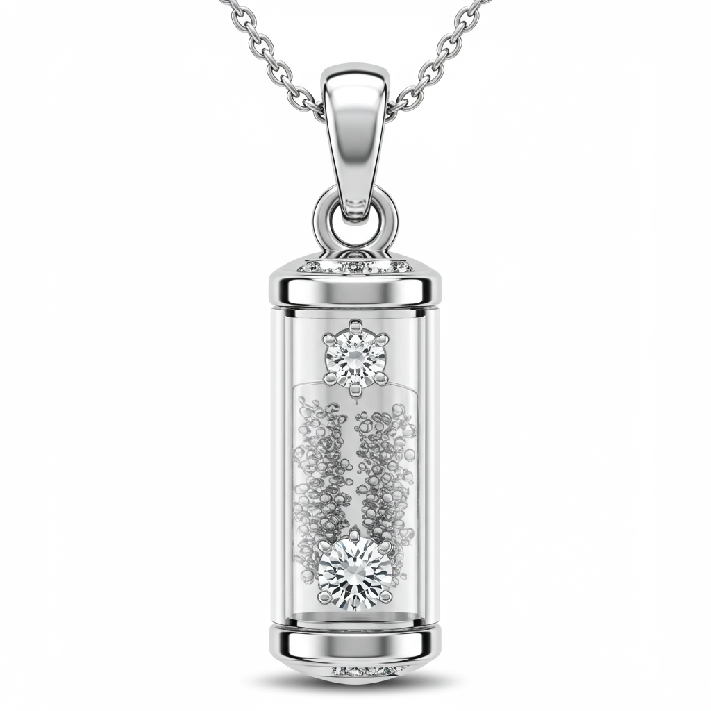 The Ash Necklace is an exquisite piece designed for enduring sentiment, seamlessly blending refined elegance with profound meaning. Crafted in lustrous 18KT white gold, the delicate pendant features a secure chamber for precious keepsakes, ensuring memories remain close to the heart. A brilliant VVS diamond accent illuminates the piece, symbolizing eternal light and resilience. This necklace serves as a timeless tribute, offering both comfort and sophistication in equal measure.