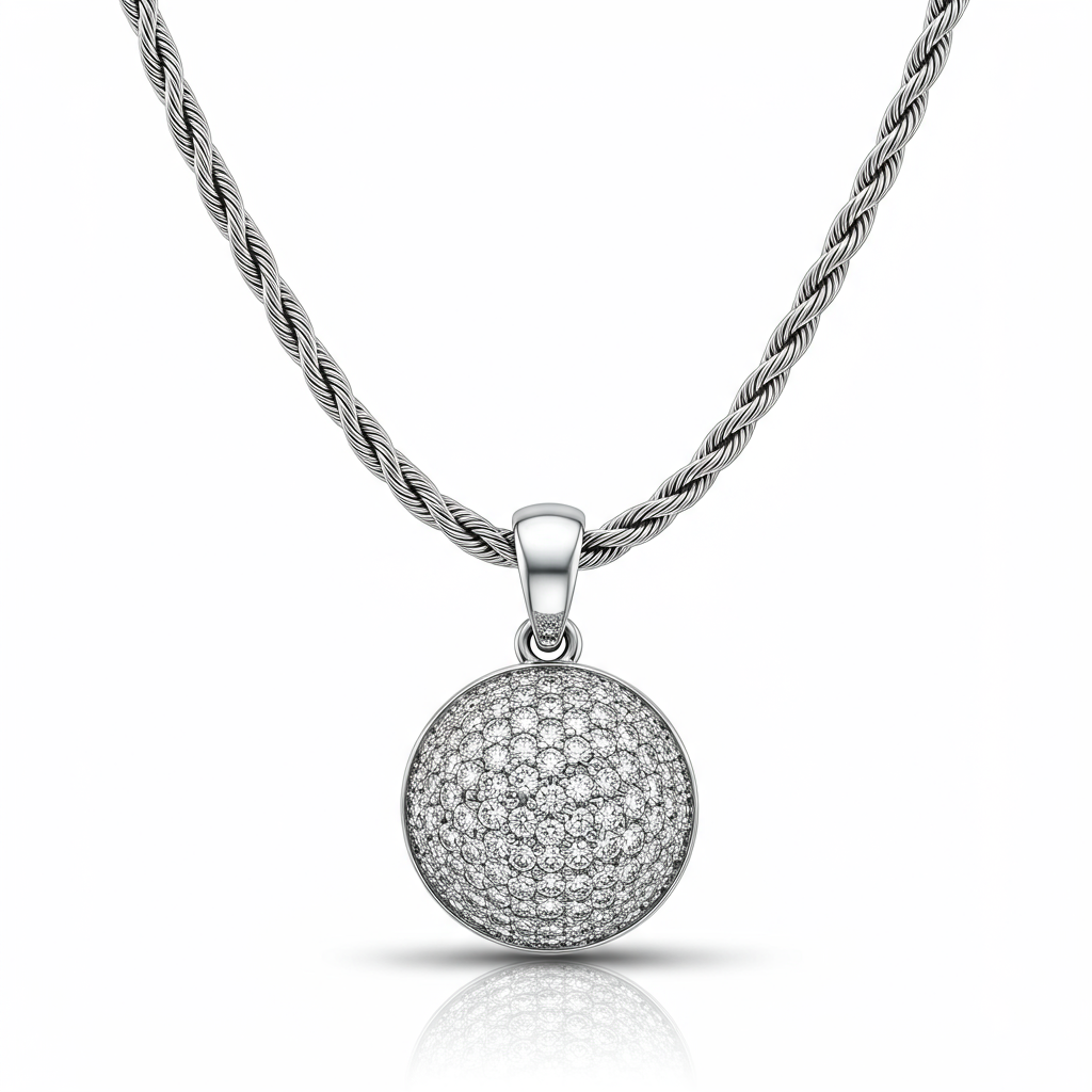 The David Yurman inspired Cable Classics necklace features an exquisite sculptural pendant crafted in polished 18KT white gold. This iconic piece showcases the signature twisted helix motif, symbolizing artistic fluidity and endless connection. The central dome of the pendant is meticulously pave-set with VVS brilliant round diamonds, providing breathtaking sparkle and depth. Suspended from a coordinating link chain, this necklace transitions effortlessly from daywear to evening glamour, embodying timeless American luxury.