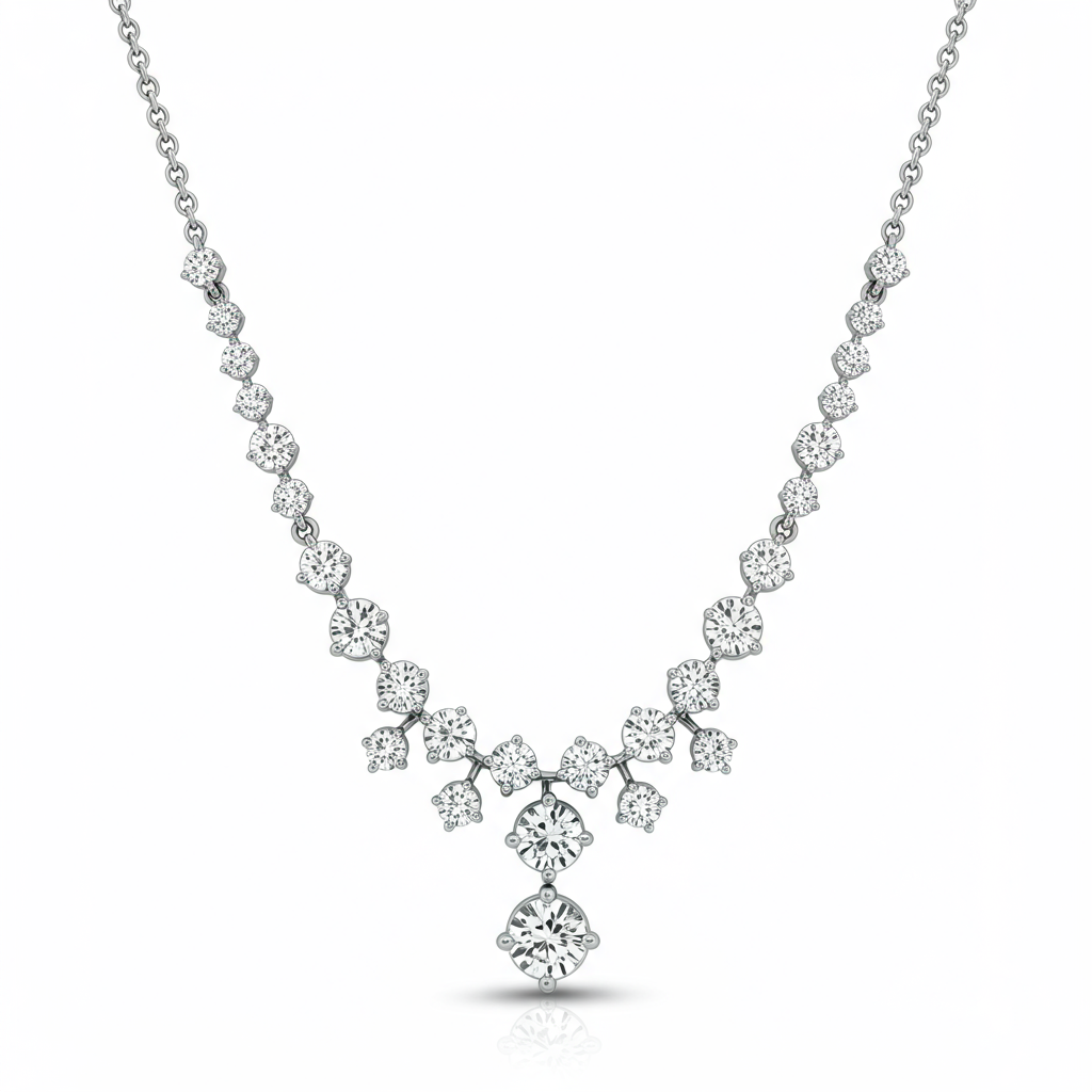 The Backdrop Necklace is a masterpiece of modern elegance, designed to captivate both coming and going. This exquisite piece features a fluid line of 18KT white gold, meticulously paved with brilliant VVS round diamonds. The unique design incorporates a striking front drop that seamlessly transitions into an extended reverse chain, perfect for accentuating open-back gowns. This necklace offers a sophisticated shimmer, making it the ultimate accessory for black-tie events and elevated celebrations.
