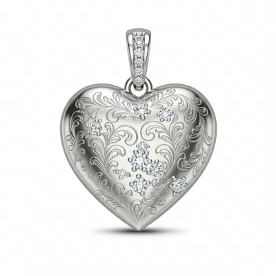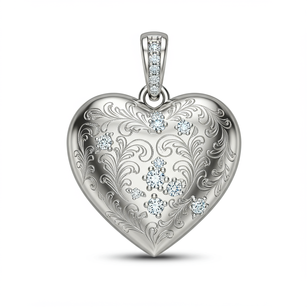 This exquisite Engraved Heart Necklace blends timeless romance with modern craftsmanship. Crafted in luminous 18KT white gold, the central heart features finely etched details creating a personalized texture. A delicate diamond-set bail provides a subtle sparkle, leading to the accompanying fine chain. This piece serves as a perfect symbol of enduring love and sophisticated elegance, suitable for any occasion.