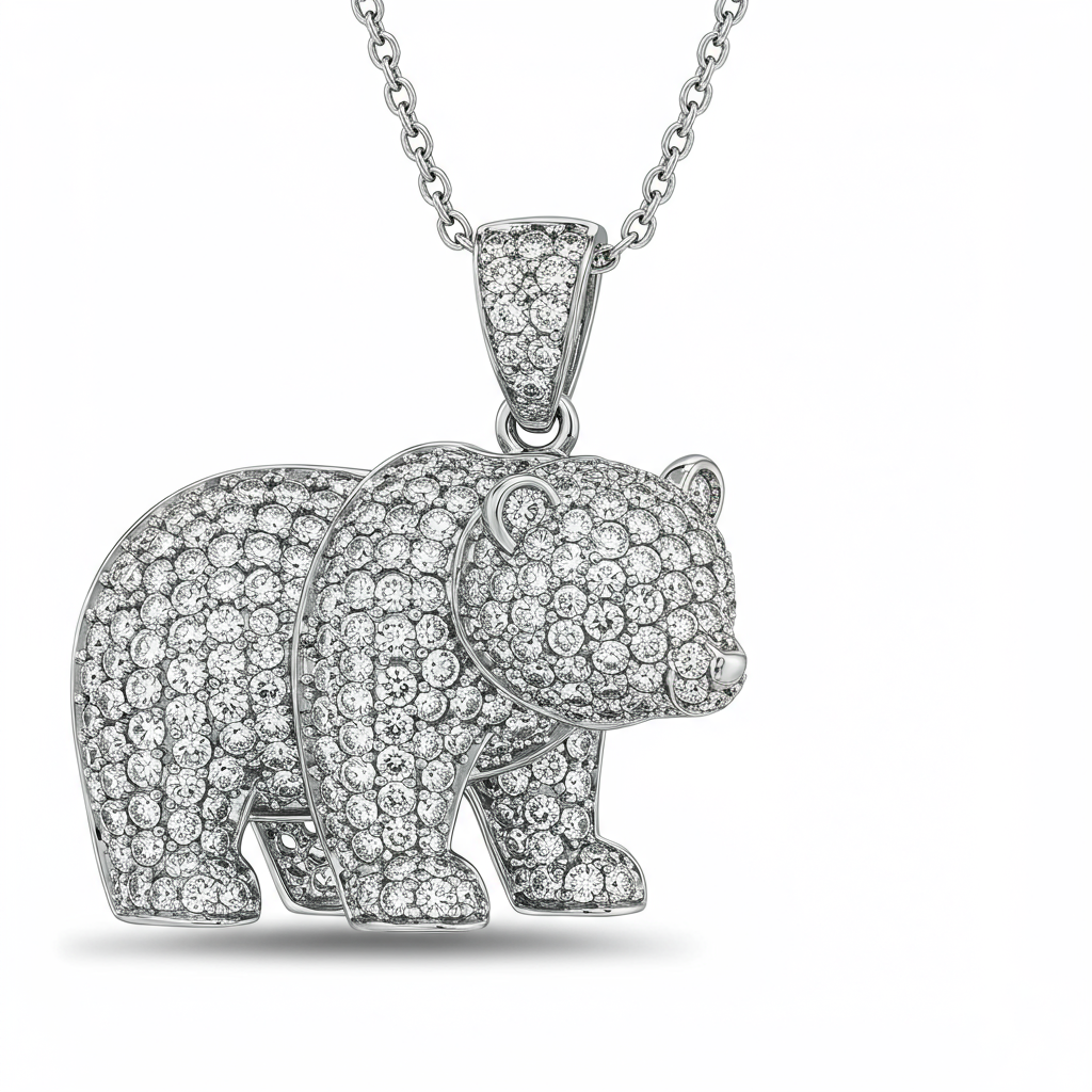 The Bear Necklace captures the noble spirit of nature with exquisite craftsmanship. Crafted in polished 18KT white gold, the sophisticated pendant features a stylized bear silhouette pave-set entirely with brilliant VVS diamonds. This charming yet luxurious piece serves as a modern talisman, symbolizing strength and protection. It hangs elegantly from a delicate chain, perfect for daily wear or as a meaningful gift.