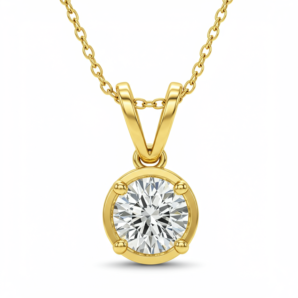 This classic Gold Necklace exudes timeless elegance, crafted meticulously in rich 18KT Yellow Gold. The centerpiece features a stunning VVS clarity diamond, securely held in a polished bezel setting that maximizes brilliance. Its delicate yet durable chain complements the pendant perfectly, offering a versatile piece suitable for both daily wear and special occasions. This necklace is an essential addition to any refined jewelry collection, symbolizing understated luxury and grace.