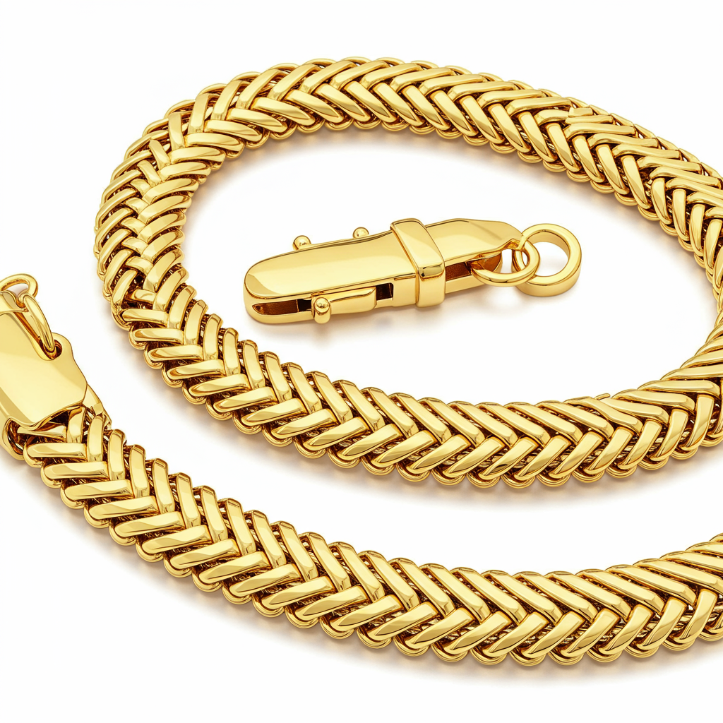 The Herringbone Necklace is a timeless statement of liquid gold luxury. Crafted in radiant 18KT Yellow Gold, its meticulously linked structure creates a fluid, slinky drape that catches the light with every movement. This flexible chain design offers unparalleled comfort and modern elegance, perfect for layering or wearing as a striking solo piece. Secured by a discreet clasp, this piece is an essential addition to any sophisticated jewelry collection, embodying effortless glamour.