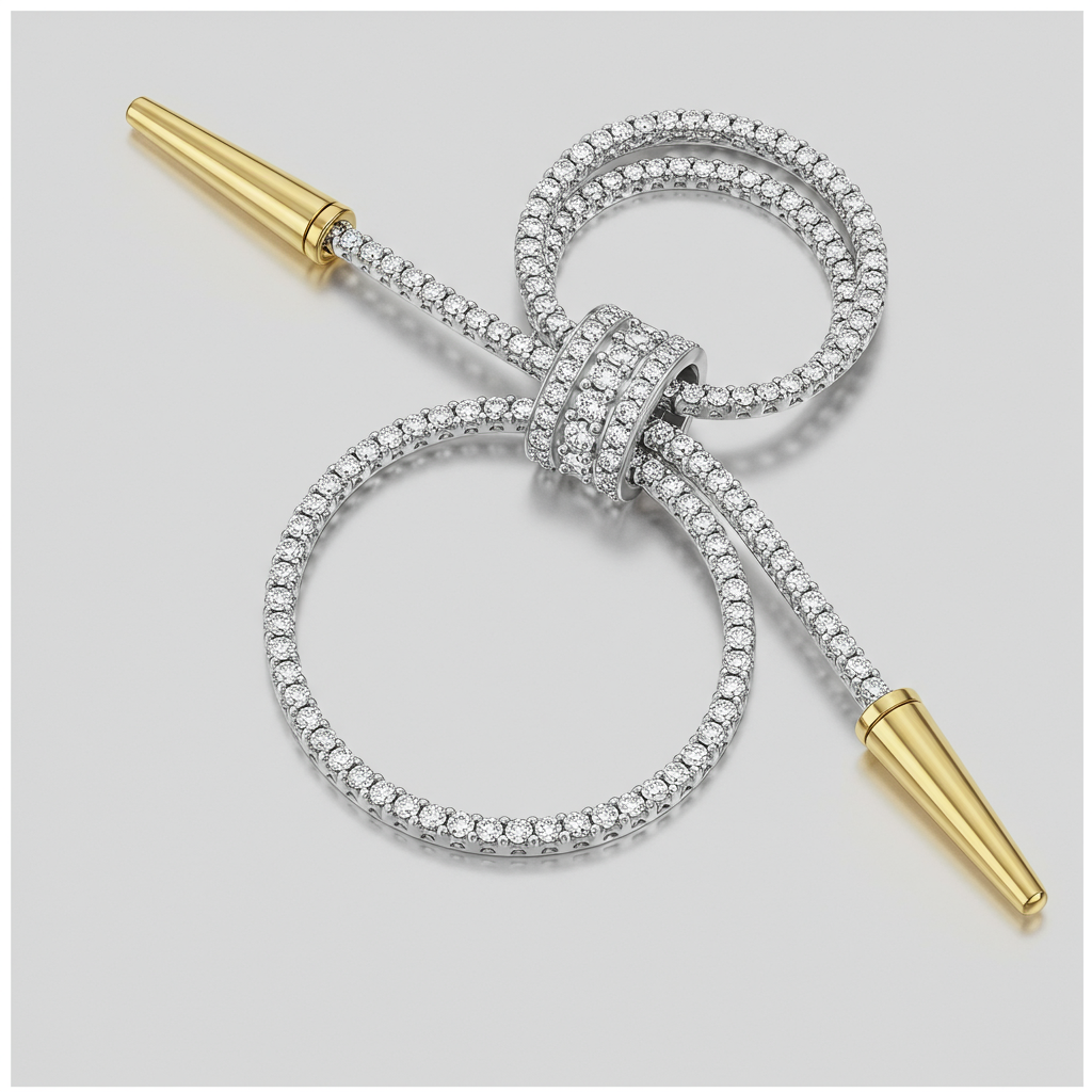 The Bolo Tie Necklace redefines contemporary elegance, blending heritage with high jewelry sophistication. Crafted in luxurious 18KT white gold, this adjustable piece features a substantial central slide mechanism paved entirely with brilliant round diamonds. The sleek, durable chain is finished with sculptural gold tips, ensuring perfect drape and effortless adjustment. This versatile necklace serves as the ultimate luxurious statement piece for any modern jewelry collection.