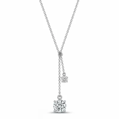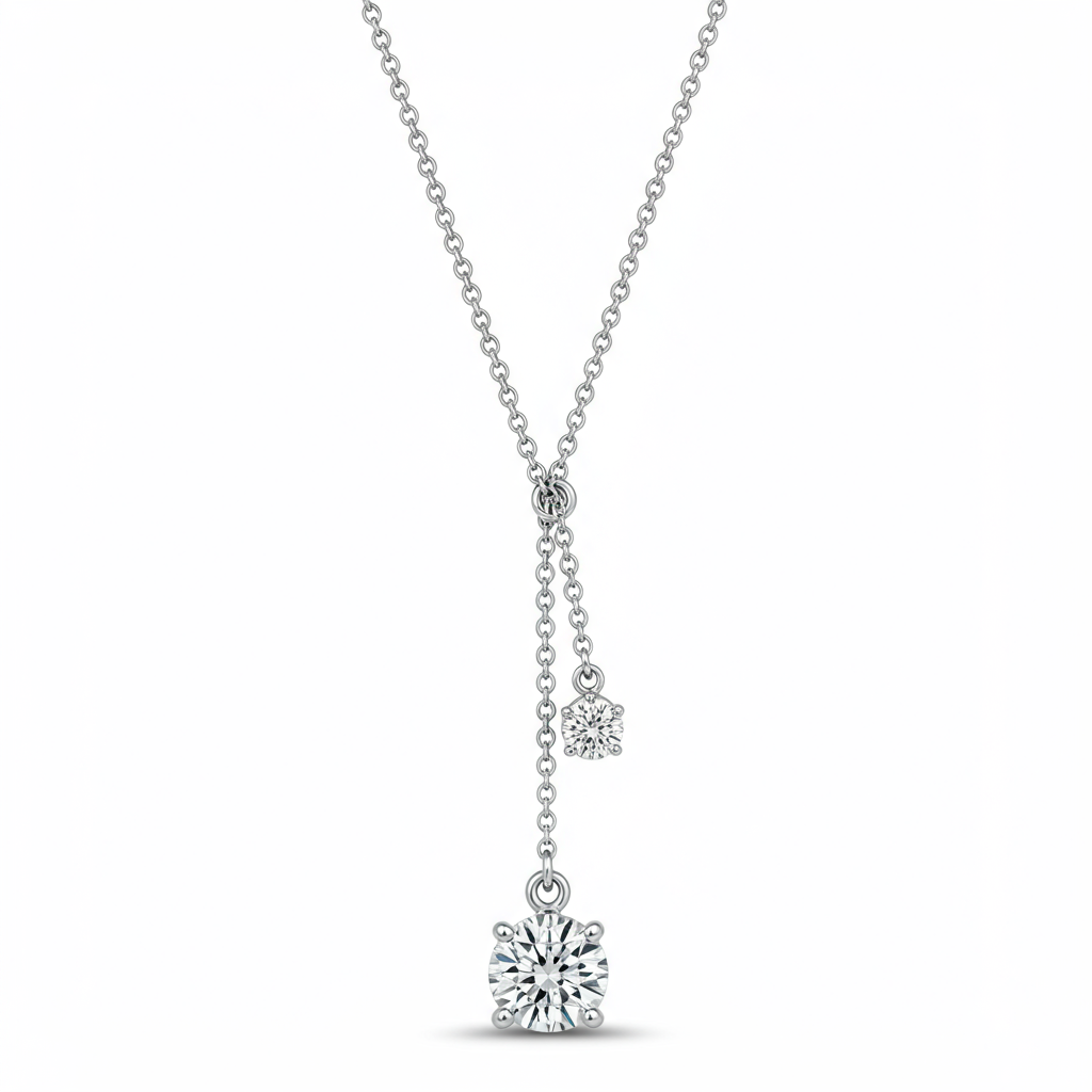 This elegant lariat necklace features a fluid design, meticulously crafted in premium 18KT white gold. A stunning VVS round brilliant diamond anchors the drop, radiating exceptional fire and brilliance. The delicate chain and secure clasp ensure comfortable, all-day wear. This piece seamlessly transitions from professional settings to evening glamour, making it a timeless addition to any fine jewelry collection.