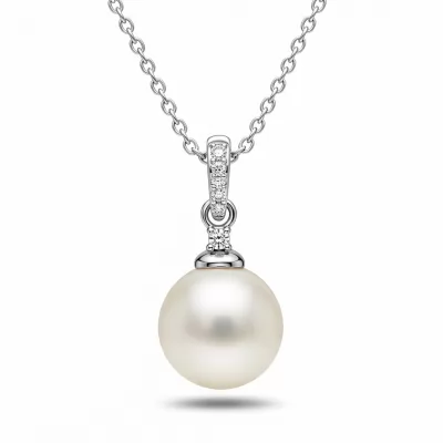 The Pearl Necklace Meaning piece embodies timeless elegance, symbolizing purity and wisdom. Centered by a luminous, high-grade cultured pearl, this pendant is meticulously suspended from an 18KT white gold chain. The bale is delicately paved with ten VVS diamonds, catching the light with every movement. This exquisite necklace serves as a profound keepsake, perfect for honoring significant milestones or treasured connections.