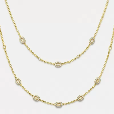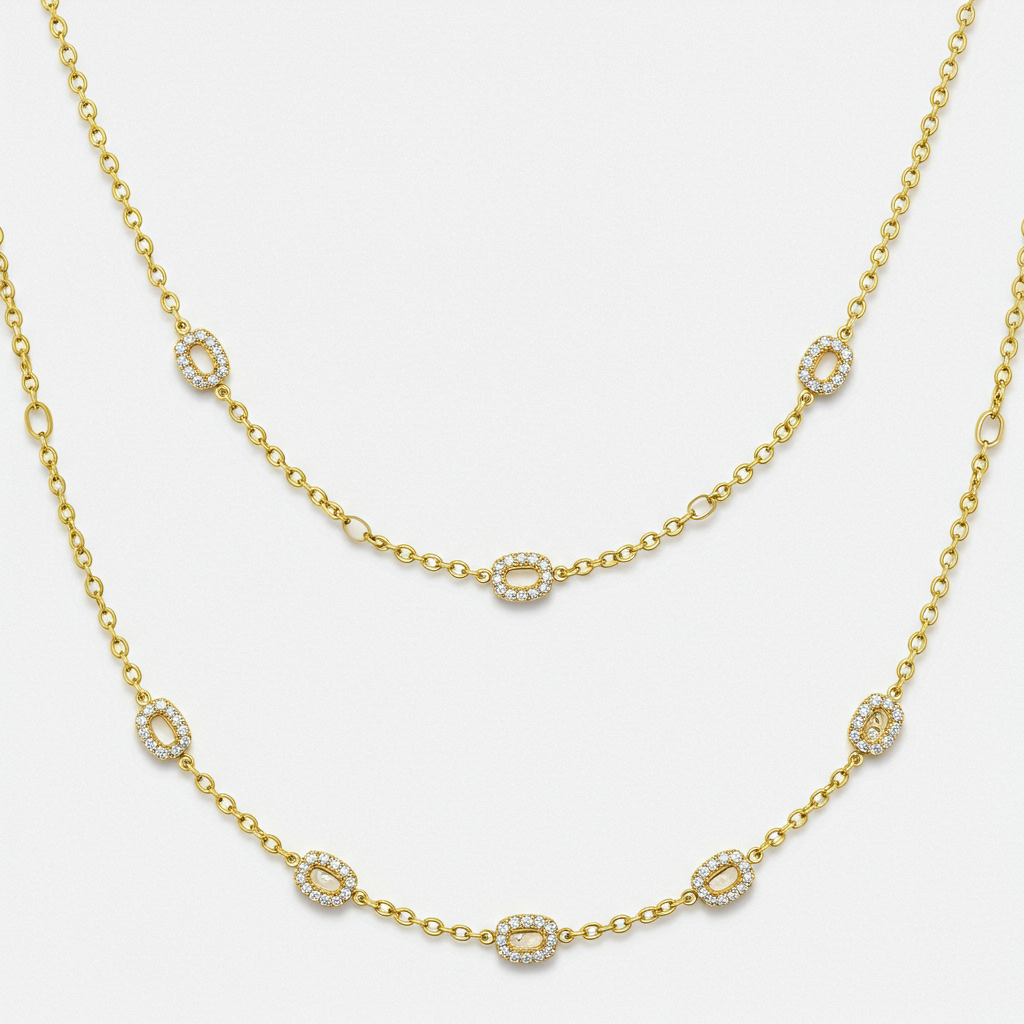 This adjustable chain is designed for personalization and timeless elegance, crafted from lustrous 18KT gold. It features a finely detailed link chain punctuated by integrated delicate charm stations along its length. Each station is meticulously set with brilliant VVS diamonds, adding subtle sparkle and capturing the light with every movement. This versatile piece serves as the perfect foundation for layering or standing alone as a sophisticated statement of personal style.