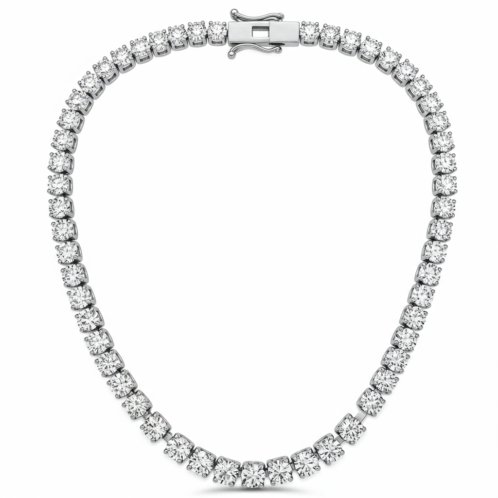 The Lab Grown Diamond Tennis Necklace is a timeless masterpiece, epitomizing endless luxury and sophistication. Each meticulously matched lab-grown diamond is hand-set in a continuous, flexible line of polished 18KT white gold. Featuring exceptional VVS clarity and G-H color, this necklace offers unparalleled brilliance and fire across its entire length. It is the definitive statement piece, perfect for gala events or elevating everyday wear with breathtaking sparkle.