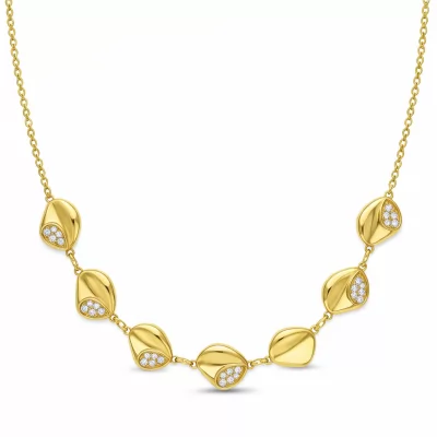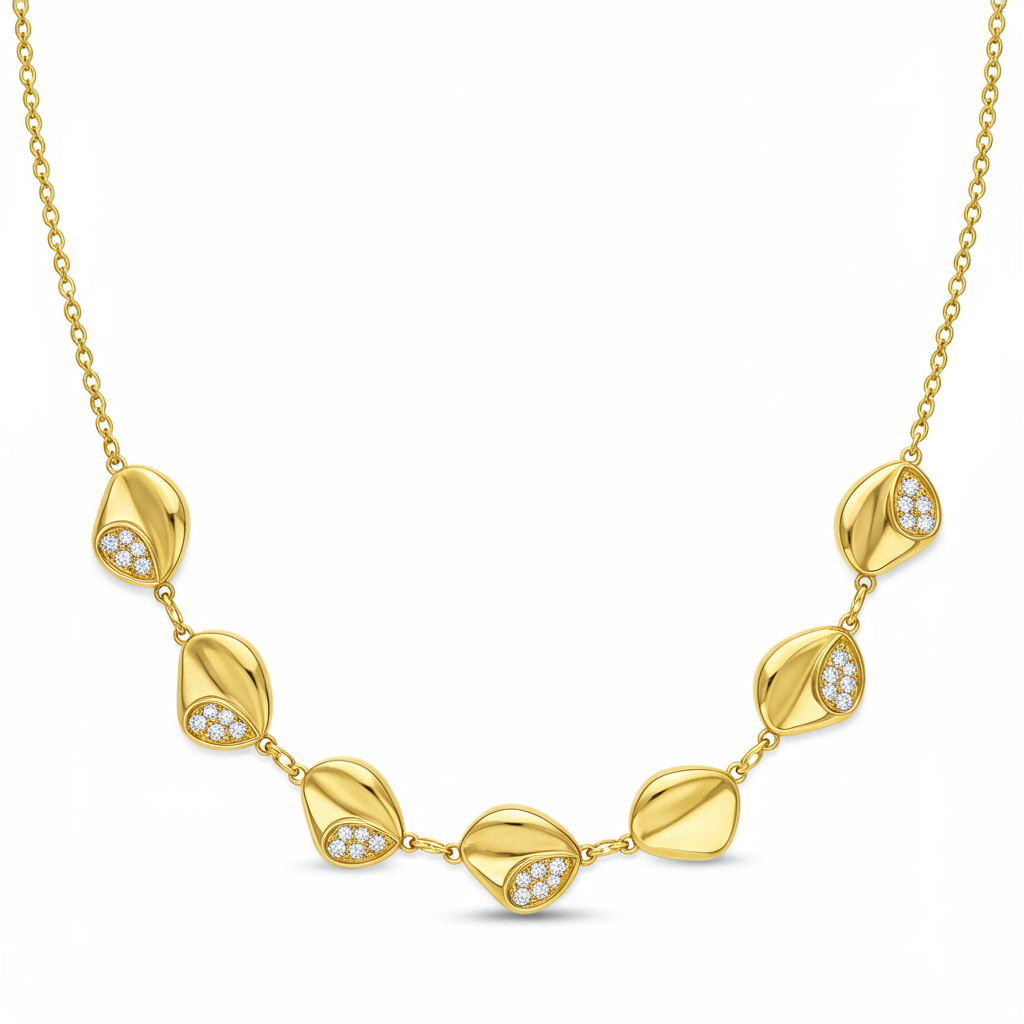 The Puka Necklace captures the spirit of coastal elegance with its distinctive, organically shaped stations. Crafted in luxurious 18KT yellow gold, each polished element is meticulously interspersed along a fine trace chain. This contemporary piece offers a versatile, chic aesthetic, perfect for layering or wearing as a striking solo statement. Its smooth contours and radiant VVS diamond accents reflect sophisticated craftsmanship and modern design. This piece is designed to be timeless and highly wearable.