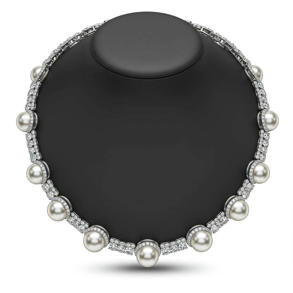 The Pearl Necklace Urban masterfully blends classic sophistication with modern architectural lines. This exquisite 18KT white gold piece features a dazzling array of VVS round brilliant diamonds seamlessly integrated into a sleek chain design. Strategically placed high-luster Akoya pearls add a timeless, elegant contrast to the contemporary setting. It is the definitive statement accessory for the discerning modern collector, providing versatile luxury for day or evening wear.