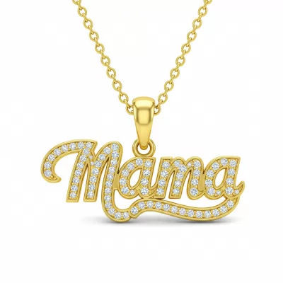 The Gold Mama Necklace is a timeless tribute to the essence of motherhood, crafted in radiant 18KT yellow gold. This delicate script pendant elegantly spells out "Mama," serving as a profound symbol of love and connection. Each letter is meticulously set with brilliant VVS diamonds, creating a sparkle that captures light with every movement. Suspended on a fine cable chain, this necklace makes a perfect, deeply meaningful gift for any occasion.