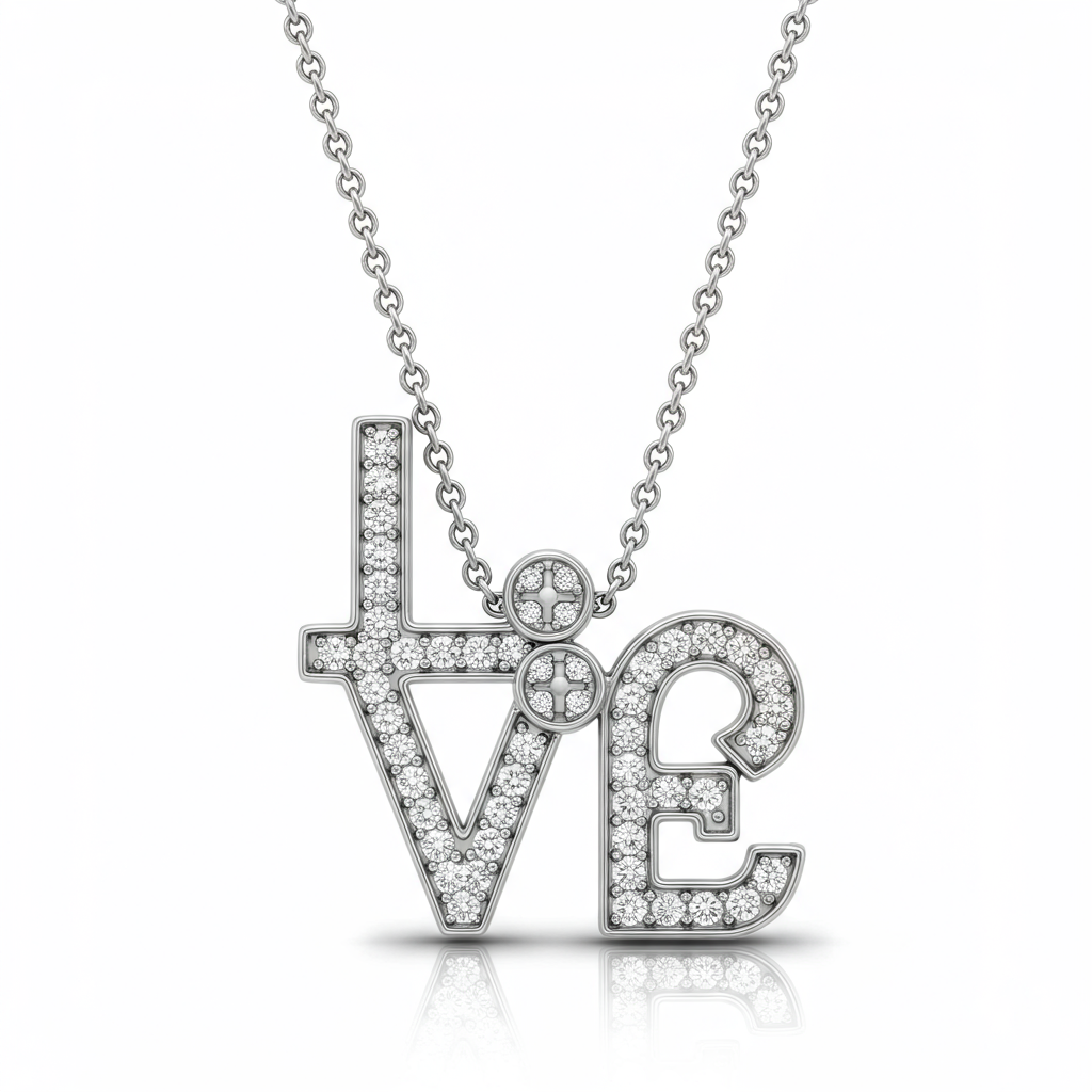 The Cartier Love Necklace is a symbol of everlasting commitment, featuring the iconic interlocking screw motifs instantly recognizable worldwide. Expertly crafted in 18KT gold, this pendant captures light with its array of meticulously set, brilliant VVS diamonds. Suspended on a delicate matching chain, it offers a blend of modern elegance and timeless design. This piece is perfect for daily wear or as a profound statement of enduring affection.