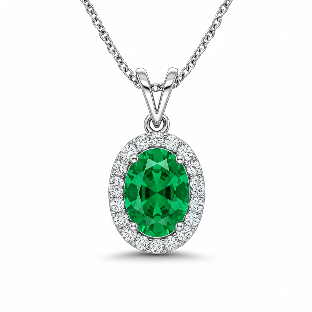 Celebrate the beauty of May with this exquisite birthstone necklace, centered around a vibrant, ethically sourced natural emerald. The captivating emerald is encircled by a dazzling halo of micropavé set round brilliant diamonds, enhancing its deep green brilliance. Crafted in lustrous 18KT white gold, this timeless pendant rests delicately on an adjustable chain, symbolizing renewal and enduring elegance. It is the perfect personalized heirloom for commemorating any significant moment.