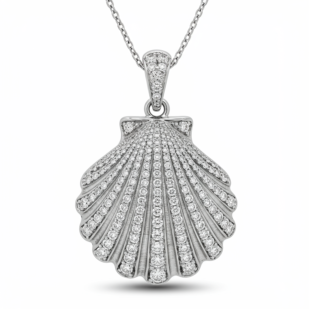 The Puka Shell Necklace reimagines natural seaside beauty through the lens of high jewelry craftsmanship. Crafted in luminous 18KT white gold, the central pendant mimics the organic curve and texture of a polished shell. This exquisite piece is meticulously paved with brilliant VVS diamonds, creating a breathtaking, light-catching surface. Suspended from a delicate, adjustable chain, this necklace offers a touch of sophisticated coastal glamour, perfect for year-round wear.