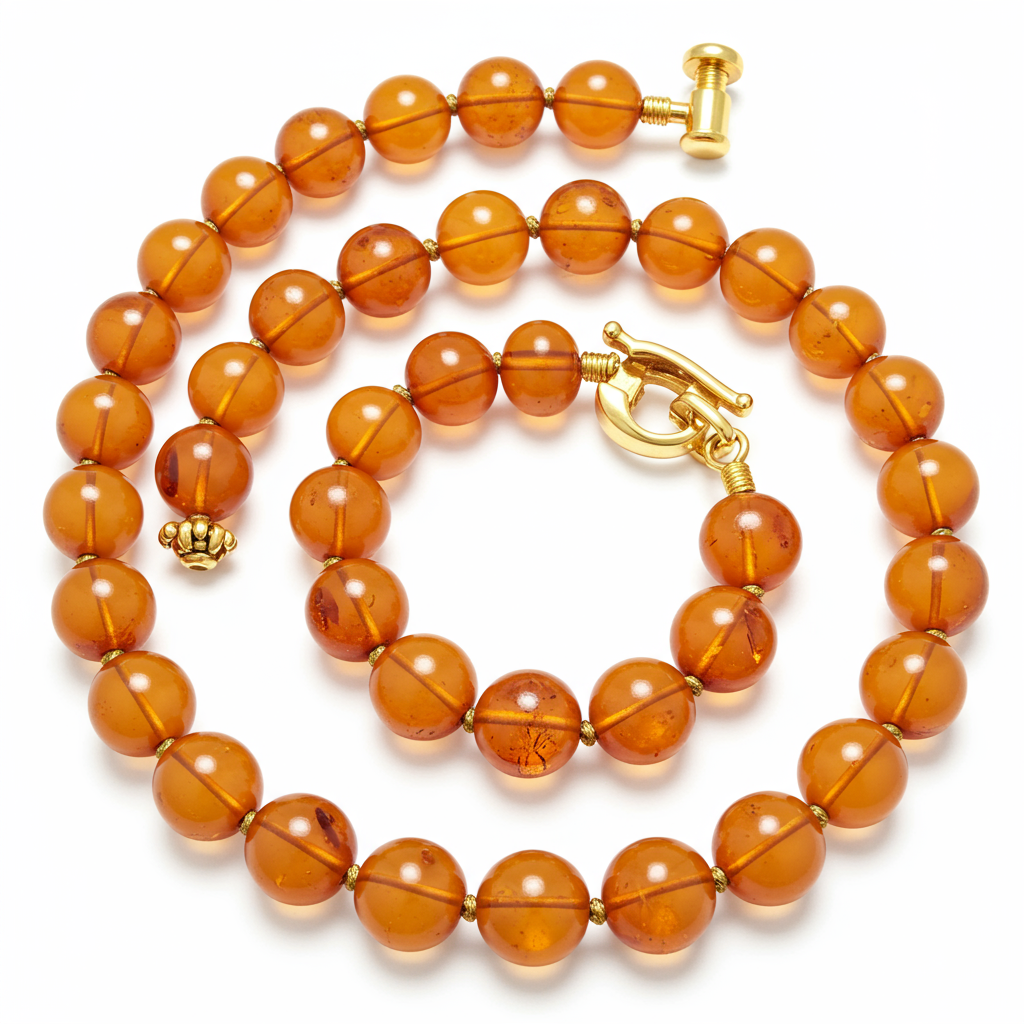 The Amber Teething Necklace is meticulously crafted from genuine, polished Baltic Amber beads, ensuring both natural beauty and safety. Each organic baroque bead is individually knotted onto durable silk cording, a feature crucial for premium jewelry safety standards. The piece is secured with a small, yet durable, 18KT yellow gold screw clasp closure, providing peace of mind and luxury finishing. This elegant necklace offers a therapeutic aesthetic that seamlessly blends natural wellness principles with high jewelry design standards.