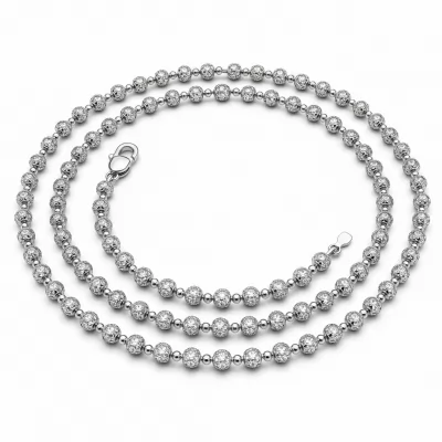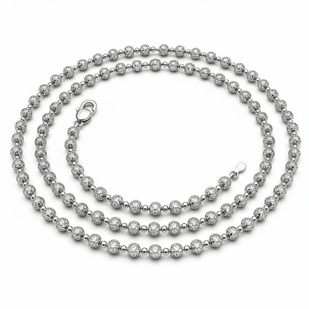 The Beaded Necklaces collection presents a magnificent strand of delicate 18KT white gold orbs, seamlessly connected to create liquid elegance. Each spherical link is expertly set with micro-pavé diamonds, ensuring breathtaking scintillation from every angle. This continuous strand drapes exquisitely along the collarbone, symbolizing perpetual luxury and refined taste. It is an essential heirloom piece designed for the most discerning jewelry collector.