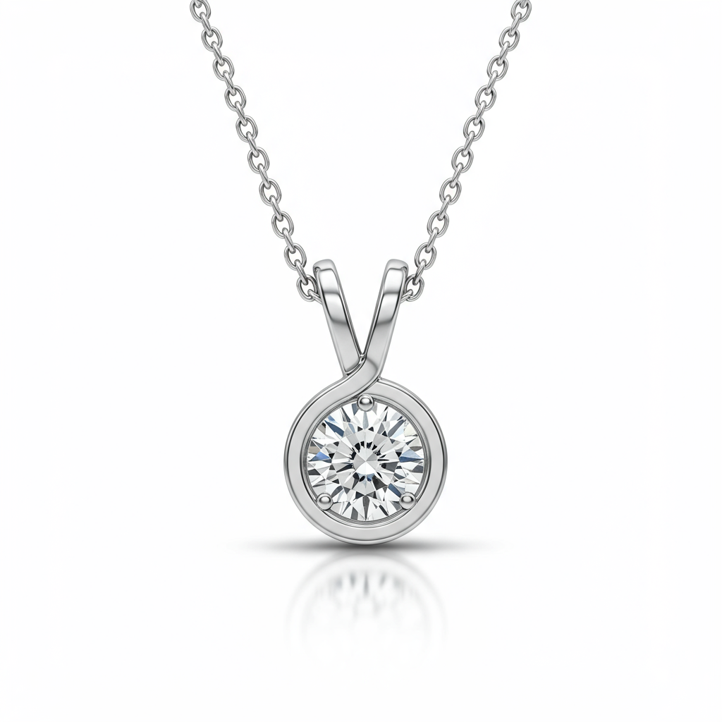 This elegant pendant necklace showcases a magnificent single round brilliant-cut diamond suspended from a delicate 14K white gold chain. The minimalist bezel setting maximizes light return, allowing the VVS clarity center stone to exhibit unparalleled fire and brilliance. Designed for sophisticated everyday wear or a stunning evening statement, this piece is the epitome of timeless grace. It is secured by a sturdy lobster clasp and represents enduring luxury and commitment.