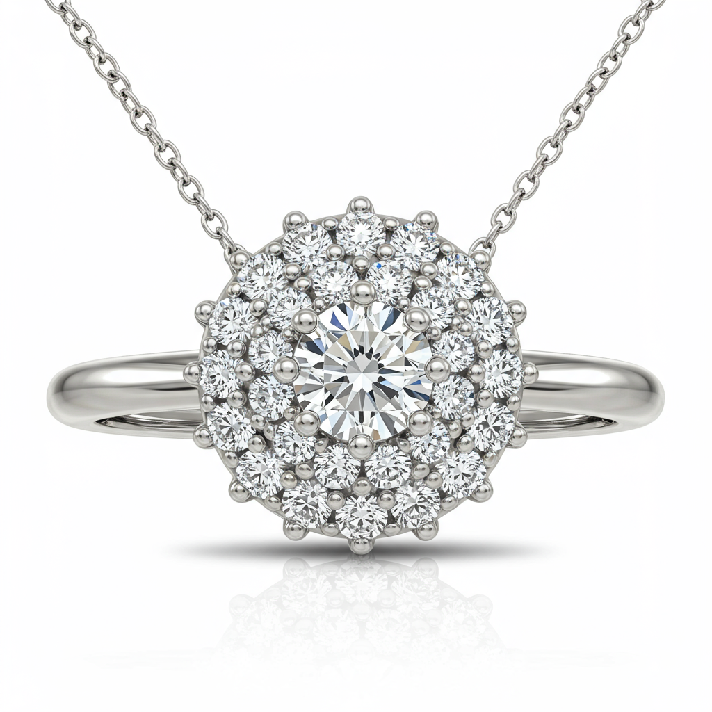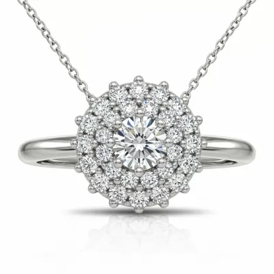 The Crystal Necklace epitomizes ethereal elegance, featuring a brilliant cluster of VVS diamonds set in luminous 18KT white gold. Its intricate design captures the maximum light, creating a dazzling effect reminiscent of freshly fallen snow. Suspended from a delicate chain, this piece rests perfectly at the d colletage, offering timeless sophistication. This exquisite necklace is designed for the modern woman who demands brilliance and unparalleled craftsmanship.