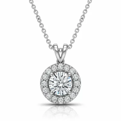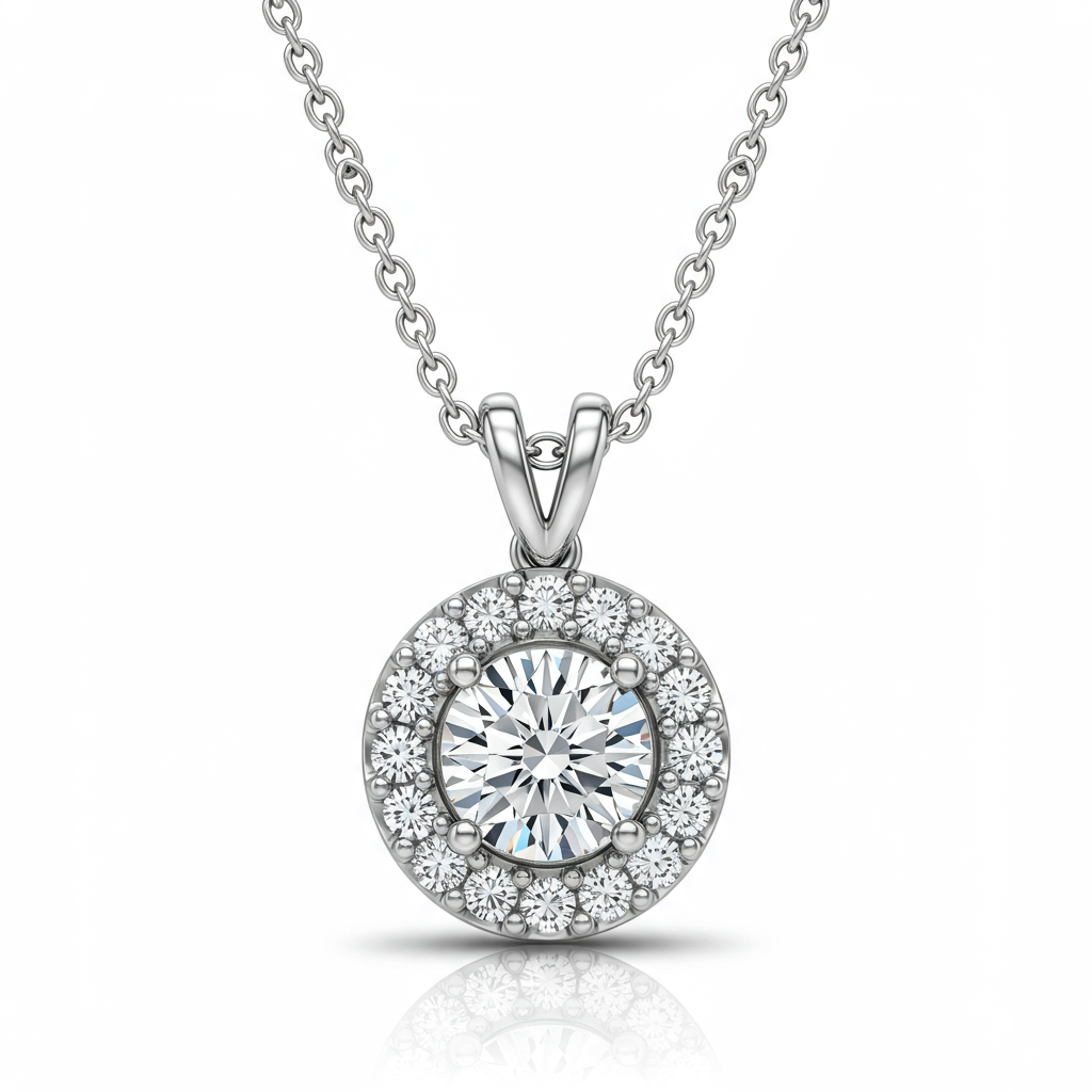 The Anniversary Necklace embodies enduring elegance, featuring a brilliant cluster of VVS diamonds set in highly polished 18KT white gold. This magnificent pendant highlights a stunning center stone enveloped by a dazzling halo of accent diamonds, maximizing its sparkle and presence. Crafted to commemorate life's most significant milestones, it serves as a luxurious symbol of everlasting commitment and love. The delicate 18-inch chain complements the design, ensuring comfortable wear and exquisite drape.