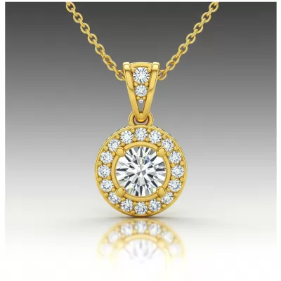 This exquisite pendant necklace showcases the perfect balance of modern elegance and timeless luxury. Crafted in radiant 18KT yellow gold, the design features a stunning 0.75 carat solitaire, meticulously encircled by a brilliant halo of accent diamonds. The VVS clarity ensures exceptional fire and brilliance, capturing light from every angle. Suspended from a delicate adjustable chain, this piece is an iconic statement accessory for any woman.