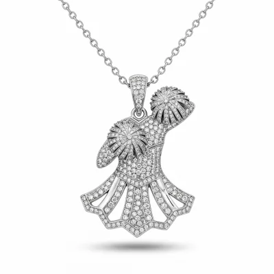 The Kendra Scott Cheer Necklace embodies spirited elegance, featuring a symbolic motif meticulously crafted in luxurious 18KT white gold. This delicate pendant showcases a dazzling array of VVS G-H round brilliant diamonds set in a secure micro-pave style. Its sleek design captures light beautifully, making it an ideal accessory for both everyday wear and special celebratory occasions. This piece is a perfect fusion of modern craftsmanship and sentimental value.