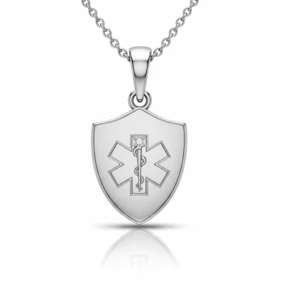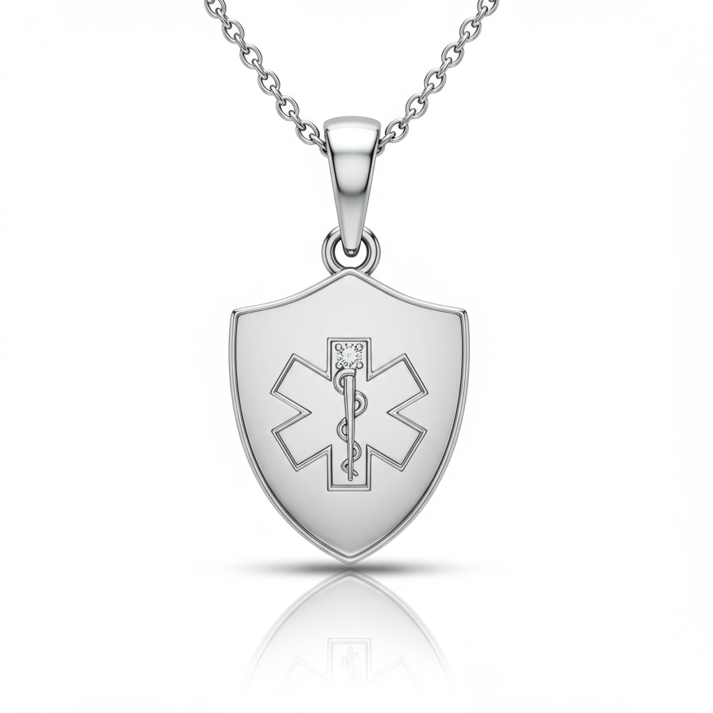The Medical Alert Necklace combines essential function with discreet elegance, crafted meticulously in polished 18KT white gold. This sophisticated pendant features a central, engravable surface and is subtly accented by a single brilliant VVS diamond on the bail, ensuring peace of mind without compromising style. Its streamlined design is ideal for comfortable daily wear, providing critical information when needed most. This piece is a testament to purposeful luxury, offering security and stunning craftsmanship in one design.
