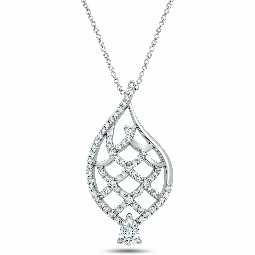 The Mermaid Necklace captures the enchanting movement of ocean waves, meticulously crafted in lustrous 18KT white gold. This fluid design features a central cluster of brilliant-cut VVS diamonds that cascade downward, resembling shimmering water droplets. The elegant silhouette transitions into a delicate chain, making it a truly mesmerizing statement piece. It symbolizes grace and enduring beauty, perfect for grand occasions or elevating daily wear.