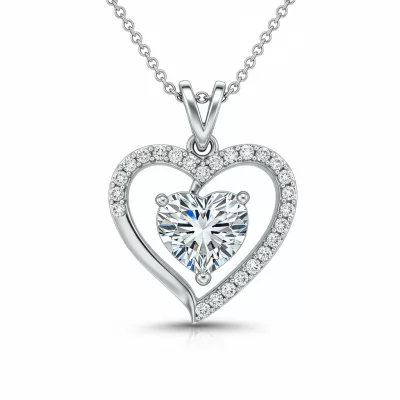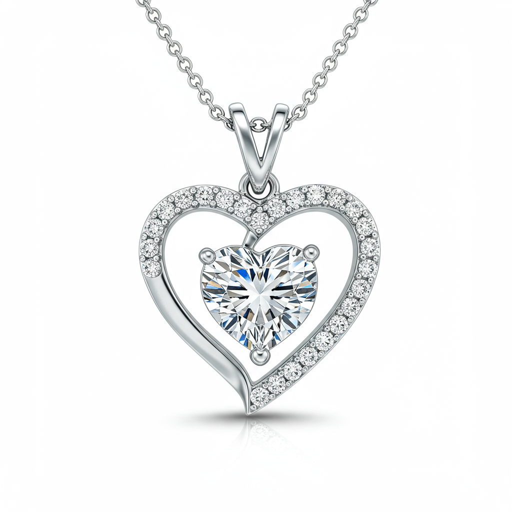 The Pandora Heart Necklace is a breathtaking symbol of eternal romance, featuring a beautifully contoured heart pendant crafted from lustrous 18KT white gold. This piece is meticulously adorned with pave-set diamonds, leading up to a stunning centrally set heart-shaped stone. The delicate chain ensures the pendant rests perfectly against the skin, capturing and reflecting light with every movement. It serves as an unforgettable statement of enduring love and sophisticated elegance, suitable for any significant milestone.