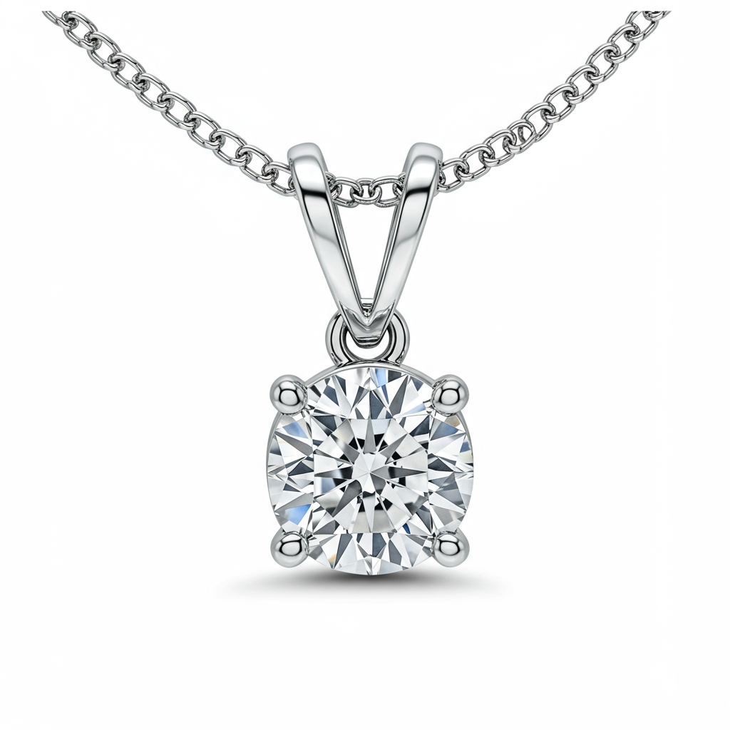 The Silver Necklace Women pendant radiates timeless elegance, featuring a brilliant central VVS diamond suspended from a delicate 18KT white gold chain. This exquisite piece captures and reflects light with dazzling intensity, embodying pure sophistication. Its minimalist setting ensures maximum focus on the stunning clarity of the solitaire stone. Perfect for both everyday wear and formal occasions, this necklace serves as a cherished symbol of refined taste and luxury.