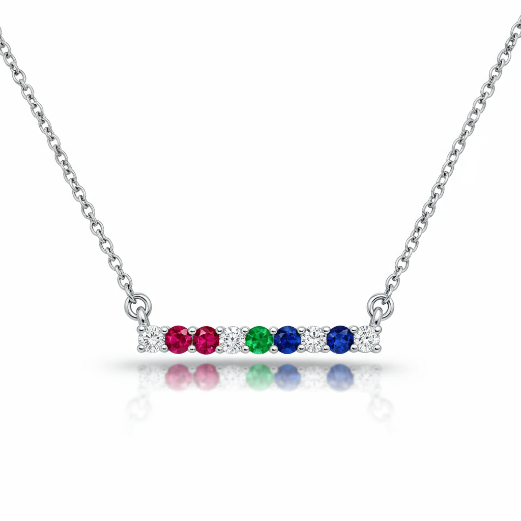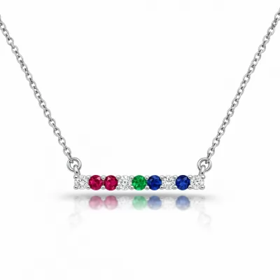 The Rainbow Necklace is a vibrant expression of joy, expertly crafted in luminous 18KT white gold. This linear bar pendant features a dazzling spectrum of 16 precious gemstones, meticulously set to create a vivid gradient effect. Each stone, ranging from fiery ruby and rich emerald to deep sapphire, is selected for its exceptional brilliance and color saturation. Suspended from a delicate yet robust chain, this piece offers sophisticated, contemporary elegance and serves as a timeless statement accessory.