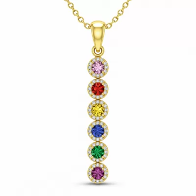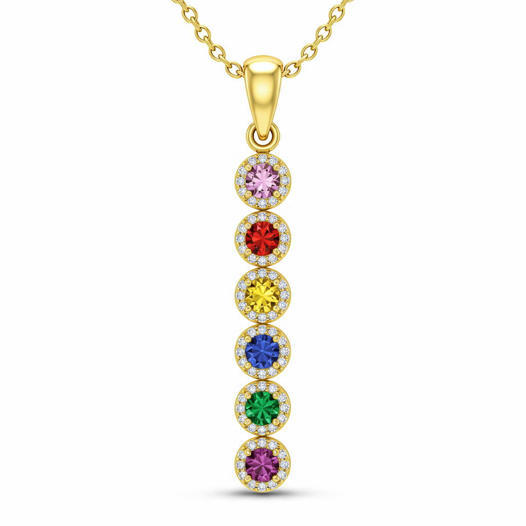 The Chakra Necklace is a powerful statement piece, meticulously crafted in 18KT yellow gold. This elegant pendant features seven carefully selected, vibrant natural gemstones representing the body's energy centers, each surrounded by a delicate halo of brilliant VVS diamonds. Designed to balance and harmonize, the necklace merges spiritual significance with sophisticated high jewelry design. Its smooth finish and exceptional stone setting ensure comfortable wear and timeless allure.