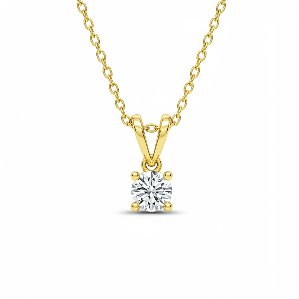 The Dainty Gold Necklace epitomizes understated elegance, featuring a brilliant 0.35 carat solitaire diamond set perfectly in lustrous 18KT yellow gold. This timeless piece catches the light beautifully, highlighting the exceptional VVS clarity and G color of the stone. Suspended from a delicate adjustable chain, it rests gracefully upon the collarbone, making it the perfect everyday signature accessory. Its minimalist design ensures versatility, seamlessly transitioning from office wear to evening sophistication.