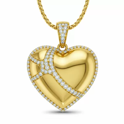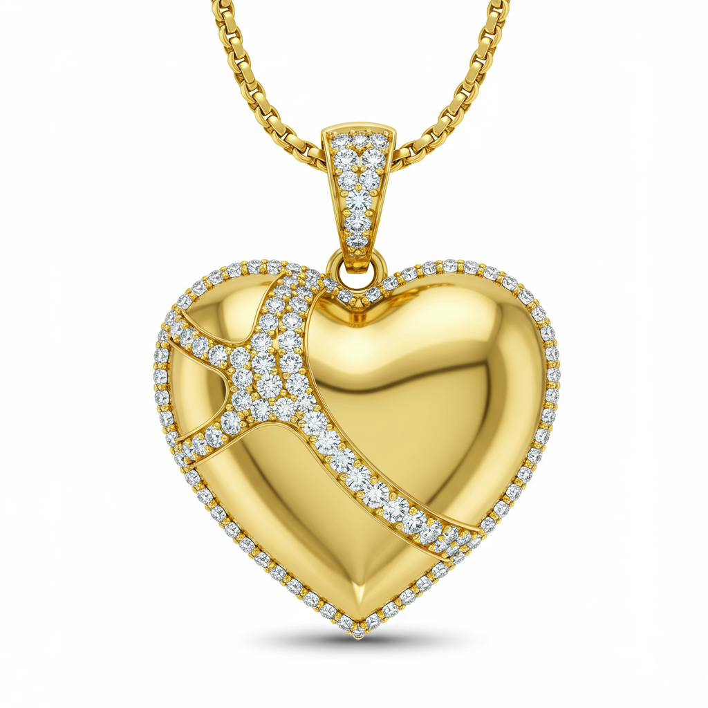 The Chunky Heart Necklace redefines classic romance with modern, substantial design. Crafted in radiant 18KT yellow gold, this piece features a boldly sculpted heart silhouette meticulously paved with brilliant VVS diamonds. Its elevated profile and luxurious weight make it a striking statement for everyday wear or sophisticated evening attire. This necklace symbolizes enduring affection and contemporary elegance.