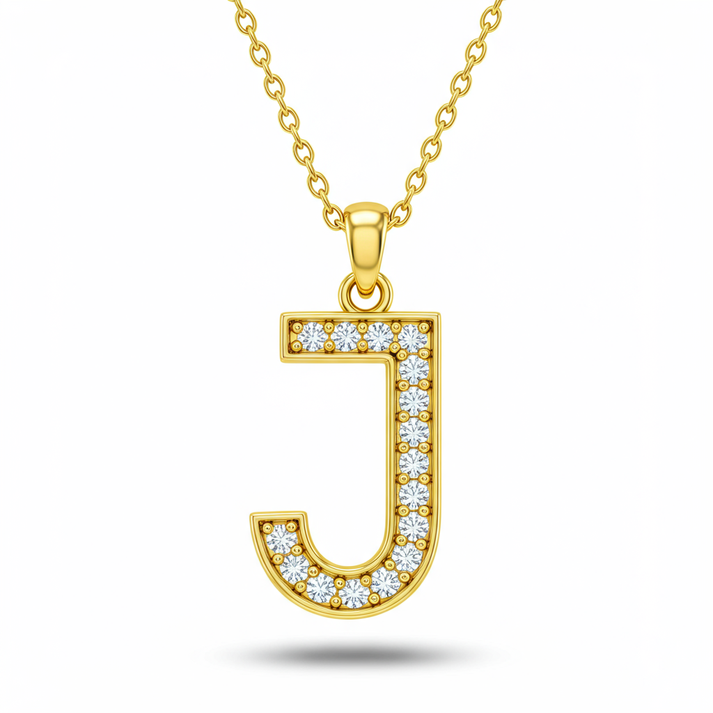 The J Initial Pendant Necklace offers a personalized touch of elegance, meticulously crafted in radiant 18KT yellow gold. This delicate script initial is fully paved with brilliant-cut diamonds, maximizing scintillation and fire. Suspended on a slender, adjustable chain, the design rests perfectly against the collarbone. It serves as a timeless emblem of identity, making it the quintessential signature piece for daily wear or layered styling.