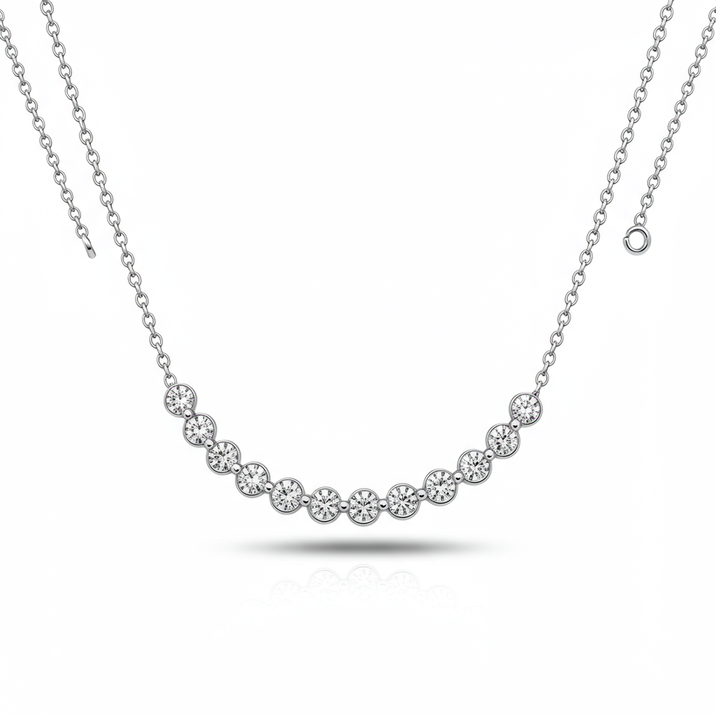 A mesmerizing piece, the Necklace Tattoo Ideas captures the essence of permanent beauty in delicate gold. This innovative design features a slender chain adorned with scattered brilliant-cut diamonds, mimicking the subtle shimmer of skin art. Crafted in polished 18KT white gold, the necklace rests gracefully, offering a seamless blend of fine jewelry and contemporary style. It serves as an intimate signature piece, perfect for everyday elegance or layering with other minimalist chains.