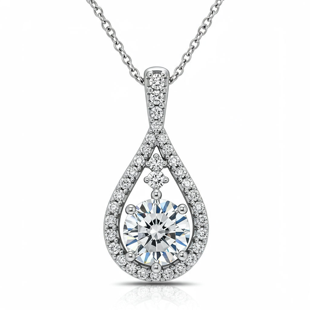 The Moana Necklace embodies oceanic grace, featuring a striking diamond drop design suspended from a delicate chain. Expertly crafted in luminous 18KT white gold, this piece showcases superior VVS clarity diamonds known for their breathtaking fire. Its elegant silhouette ensures a refined and unforgettable sparkle, making it the perfect statement accessory for luxury connoisseurs. This necklace promises to elevate any evening attire with its sophisticated brilliance.