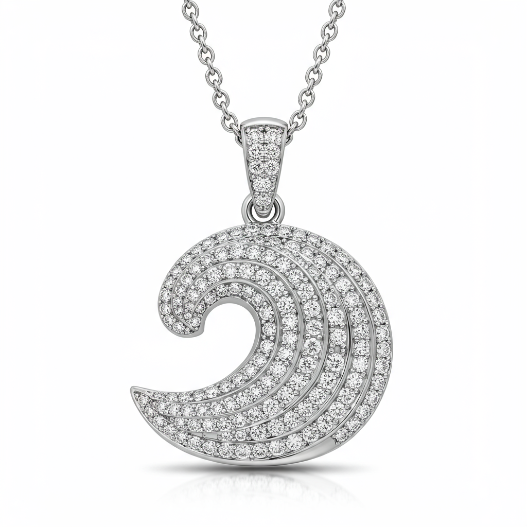 The Surfer Necklace captures the essence of coastal elegance with its dynamic, wave-inspired design, meticulously crafted in radiant 18KT white gold. This fluid pendant features a cascade of brilliant round diamonds, embodying the sparkle of sunlight on ocean spray. Suspended from a delicate yet durable chain, the piece offers unparalleled brilliance and graceful movement. It is the perfect signature accessory for the modern adventurer who cherishes both luxury and freedom.
