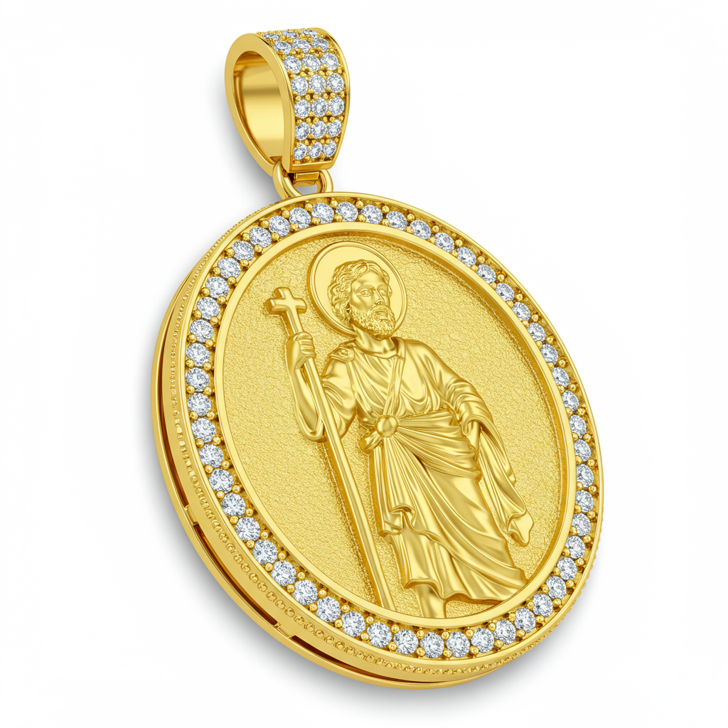 This heirloom-quality Saint Christopher medallion is a timeless symbol of protection and guidance, rendered in radiant 18KT yellow gold. The iconic central figure is framed by a meticulously detailed, micro-pave diamond border, highlighting the expert craftsmanship. Its substantial weight and intricate detailing make it a meaningful piece for everyday wear or a cherished gift. Suspended from an elegant bail, this necklace captures both deep tradition and modern luxury.