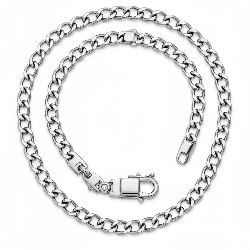 This elegant chain necklace redefines timeless luxury, crafted meticulously in high-polish 18KT white gold. The refined link structure catches the light beautifully, offering a sophisticated sheen perfect for layering or solo wear. It features a secure, polished clasp ensuring comfort and durability for daily wear. This piece is a quintessential foundation accessory, embodying subtle strength and enduring style.