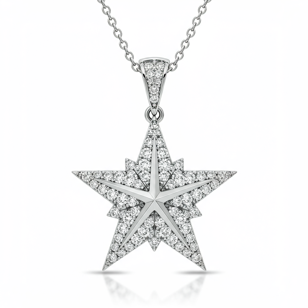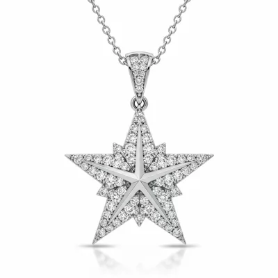 The Star Necklace captures the celestial brilliance in a timeless design, perfect for adding a touch of elegance to any ensemble. Crafted in luxurious 18KT white gold, the delicate star pendant features a breathtaking cluster of VVS round diamonds. The meticulous micro-pave setting ensures maximum sparkle and light refraction from every angle. This piece symbolizes hope and guidance, making it a meaningful addition to any high-end jewelry collection.